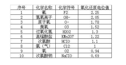 水之星水解產(chǎn)生的強氧化劑是氯的三倍,在許多水體中都有其應(yīng)用,下面的表格對比了各種氧化劑的消毒能力: