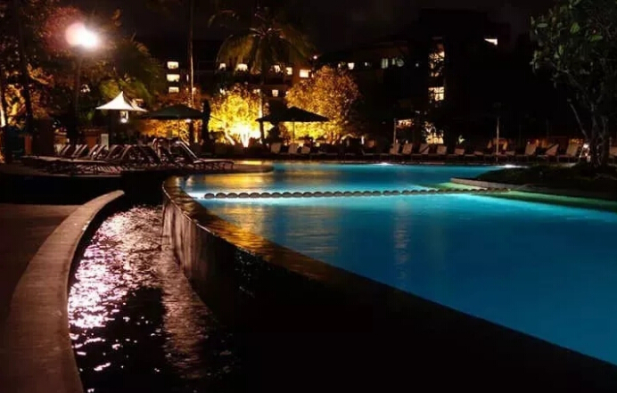 原理:無邊泳池的邊在水面以下,水池背面加落水槽,水漫過泳池邊流向落水槽,落水槽收集池水至底部的集水池,集水池將水過濾后重新輸入泳池。同時,為了讓水在視覺上是鋪滿的,邊界有一個向里的坡度,視覺上,我們看到的是靜止狀態(tài),感覺是無邊緣的,然而背后落水槽的池邊,當水面不處于靜止,池邊的水流還會像嘩啦啦的瀑布一樣流到集水池。